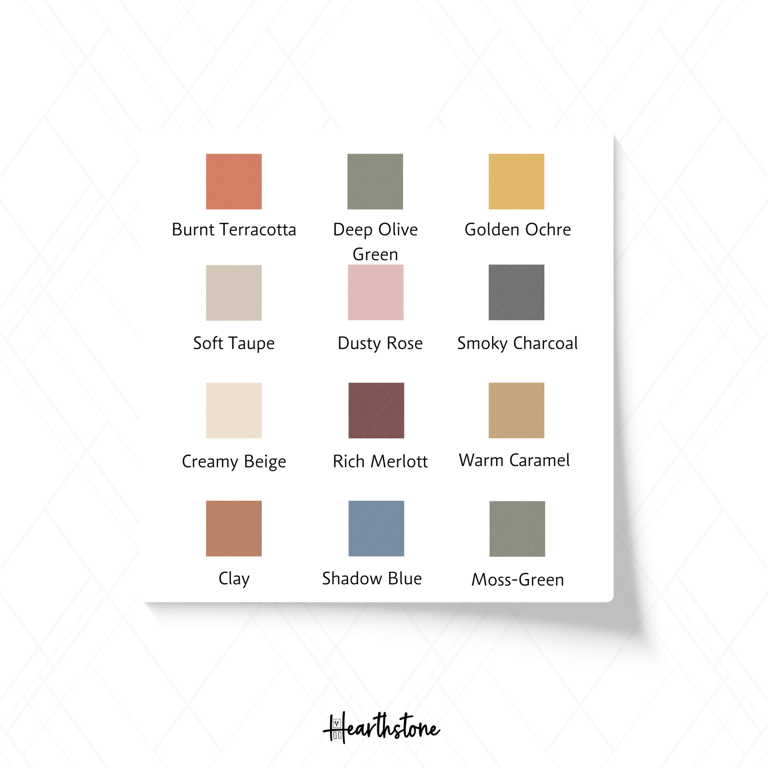 Each colour in our Autumn–Winter Palette is chosen to bring warmth, comfort, and a sense of grounding as the seasons shift. Burnt Terracotta and Warm Caramel add a cosy, fireside feel, while Deep Olive and Soft Taupe create a calm, nature-inspired backdrop. For the festive transition, touches of Vanilla Cream and muted berry tones introduce softness and subtle elegance without overpowering your space.