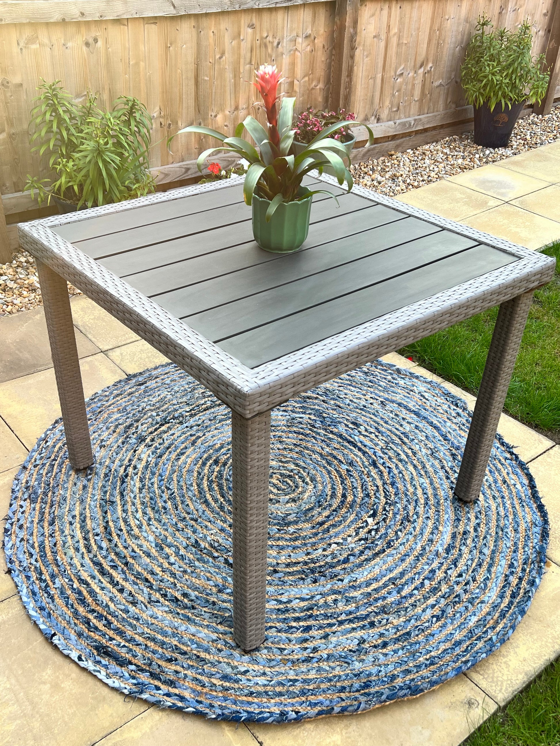 Bring a touch of natural texture and sustainable style to your space with our handcrafted Round Jute and Recycled Denim Rug. Beautifully woven using jute and repurposed denim off-cuts, this rug celebrates eco-conscious living and artisanal design. Designed primarily for outdoor use, it adds warmth and character to patios, balconies, and garden rooms. Thanks to its versatile design, it can also be styled indoors perfect for high-traffic areas like entryways, living rooms, or under coffee tables. The blend of rustic jute and soft, worn-in denim creates a unique contrast in tone and texture, while its flat-weave construction offers a low-maintenance surface.